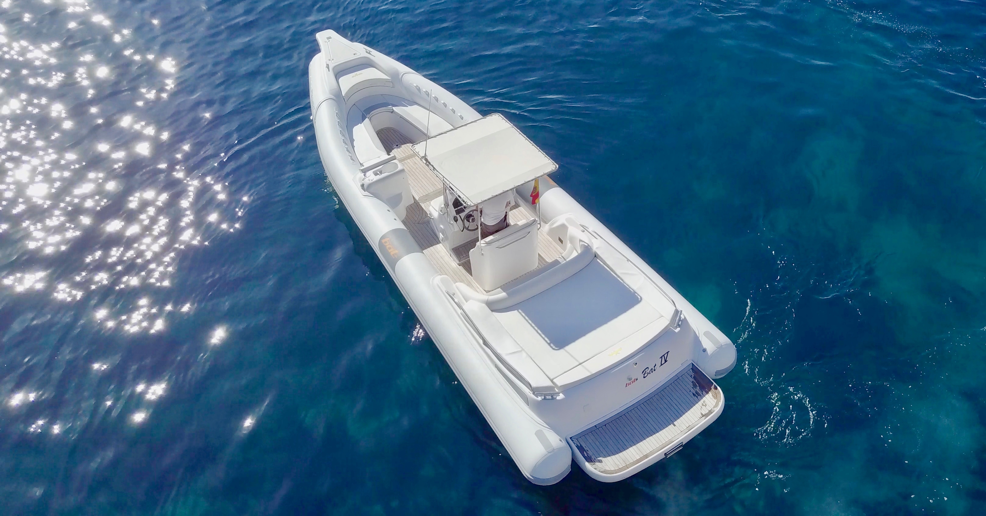 A bordo de nuestra Bat 996 Open, amplia, confortable y segura Semirrígida de diseño italiano con capacidad para 12 personas, disfrutarás de todas las comodidades necesarias para un magnifico día de charter en el mar.