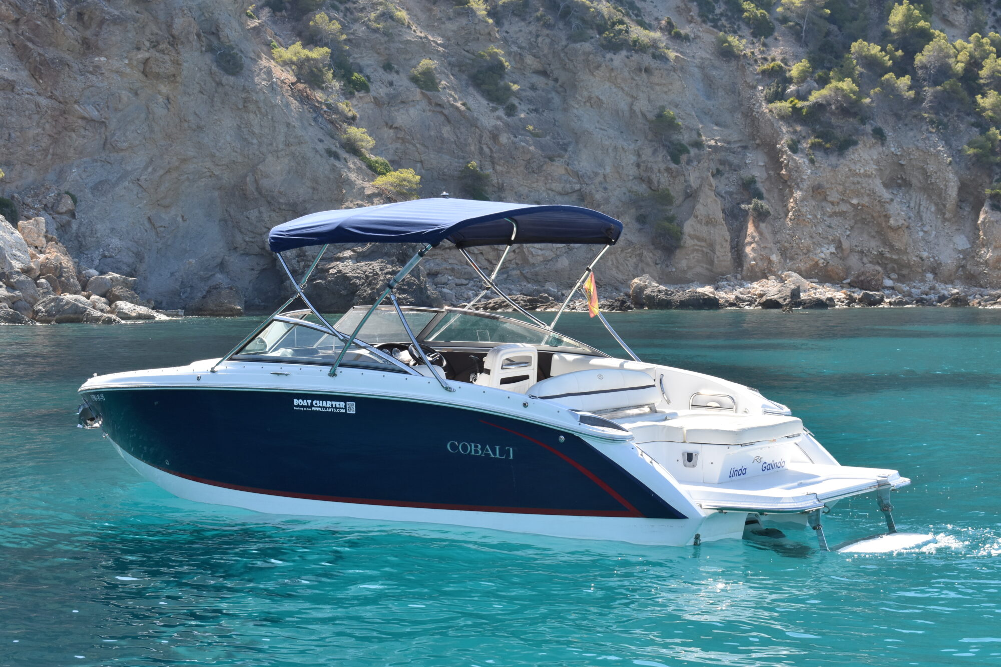 Nuestra Cobalt R5 de 7.8 metros es ideal para salidas de día en familia o amigos. Tiene capacidad para 12 personas. Dispone de un potente motor de 320 cv.