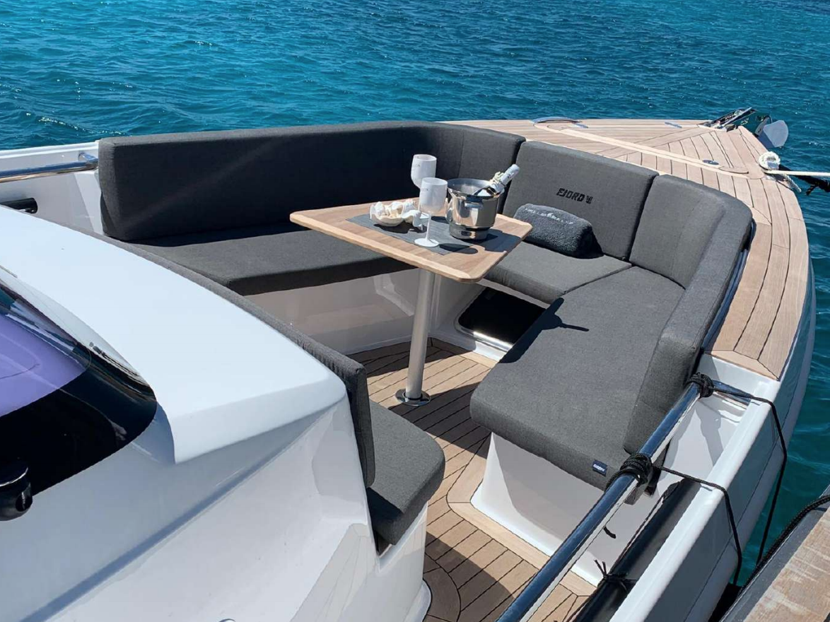 New Fjord 38 Express for charter! ”Hells Bells Express” is a new Fjord 38 Express available for charter in Mallorca. As the number one Global Fjord dealer we can offer you the best and newest Fjord yacht for day or week charters. All with the highest specifications in performance and luxury the top of the range flagship Fjord 38 Express is the perfect, stylish and most luxurious day yacht for the Balearics.